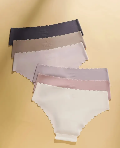 6 pcs-Pack Seamless Mid-Rise Panties with Lettuce Trim – Soft, Stretchy Briefs for Daily Comfort