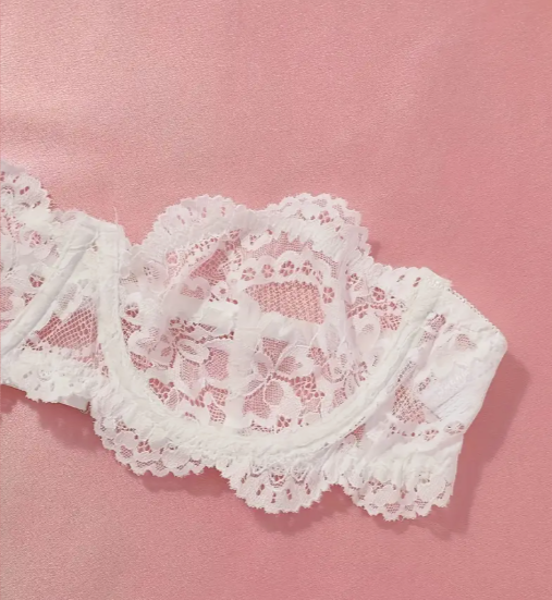 Where poetry meets allure — Calliope’s Whim is a dreamy white lace lingerie set crafted for quiet moments that leave a lasting impression. Featuring a semi-sheer floral lace bandeau bra with underwire support and drop-waist briefs, this set blends French elegance with everyday confidence.