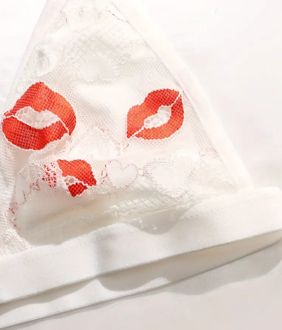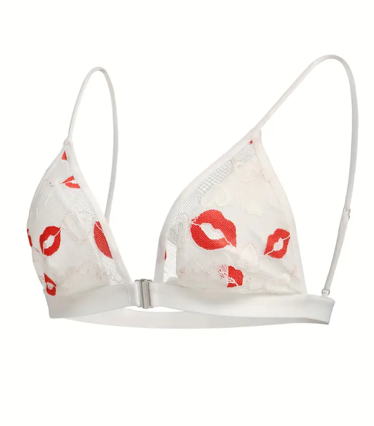 Muse of Mischief – Lip Print Mesh Plunge Bra