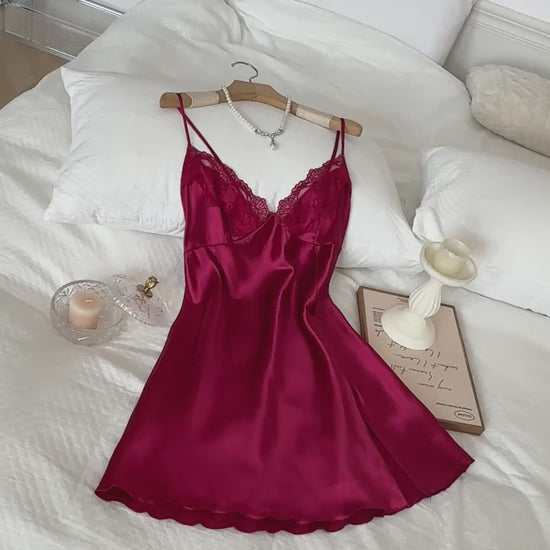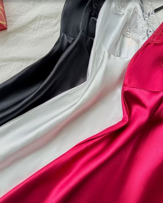 Silk Glow Lace Nightdress – Soft Satin Slip with Lace Detail